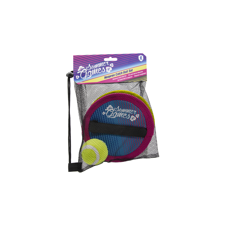 Dettagli del prodotto: Età: da 3 anni Ideale per giocare con tutta la famiglia, in spiaggia, in piscina o in giardino Nessun rischio di lesioni grazie al neoprene di alta qualità, leggero e confortevole Dimensioni e materiale: Dimensioni da montato (lunghezza x larghezza x altezza): 18 x 1 x 18 cm Dimensioni del ricevitore (diametro): 18 cm Dimensioni della palla (diametro): 6 cm Peso: 0,19 kg Materiale: Neoprene Incluso nella consegna: 2 x ricevitore 1 x palla 1 x rete di contenimento Avvertenze e istruzioni di sicurezza: Attenzione: non adatto a bambini di età inferiore ai tre anni. Contiene piccole parti che possono essere ingerite. Pericolo di soffocamento!