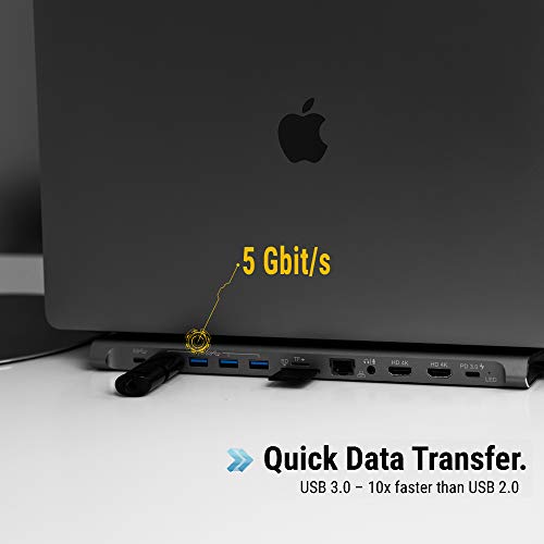XtremeMac Premium Docking Station Adattatore 12-in-1 USB C, stazione deTipo C per MacBook e Laptop: Ethernet, 4x USB 3.0, 2x USB-C PD, 2x 4K HDMI, Micro Audio, SD / TF Card Reader