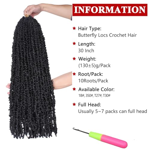 Xtrend 6 Packs Butterfly Locs Crochet Hair 30 Inch Black Pre Looped Distressed Butterfly Locs Crochet Braids Soft Messy Soft Locs Crochet Hair Extension 1B#