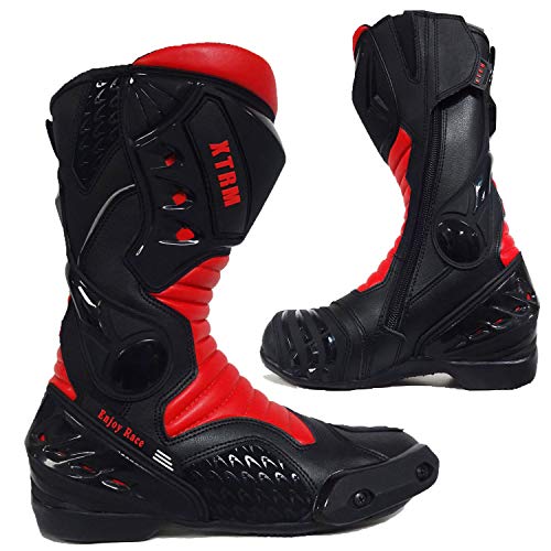 XTRM-CORE Stivali da Moto Stivali da Corsa Motocicletta Scooter Strada Track Racing Sportivi Stivale (Rosso, EU 43 / UK 9)