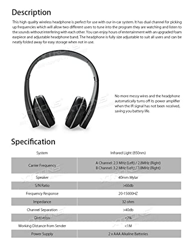 XTRONS Cuffie senza fili a infrarossi stereo a doppio canale senza fili a due canali con trasmettitore IR incorporato