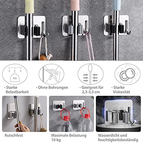 XTUDOU 6 Pezzi Porta Scope Parete, Acciaio Inossidabile Portascope da Muro Appendibile Autoadesivo Appendiscope da Muro Con Gancio per Garage, Cucina, Giardino, Magazzino, Bagno