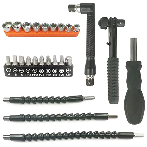 XTUDOU 25 pezzi di prolunga flessibile per trapano, estensore per trapano, set con cacciavite manuale, mini chiave a cricchetto a forma di L, per trapano