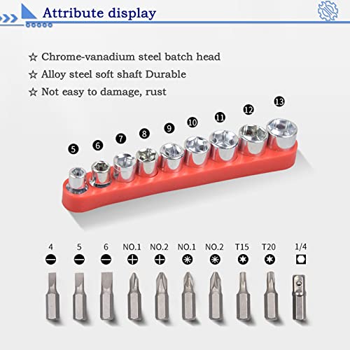 Qualità eccellente: Cacciavite flessibile sono realizzate in acciaio al cromo vanadio e acciaio legato. Ogni pezzo è trattato con effetto raso antiruggine, che presenta un'elevata durezza e resistenza. E la punta è magnetica, che può tenere saldamente il trapano.