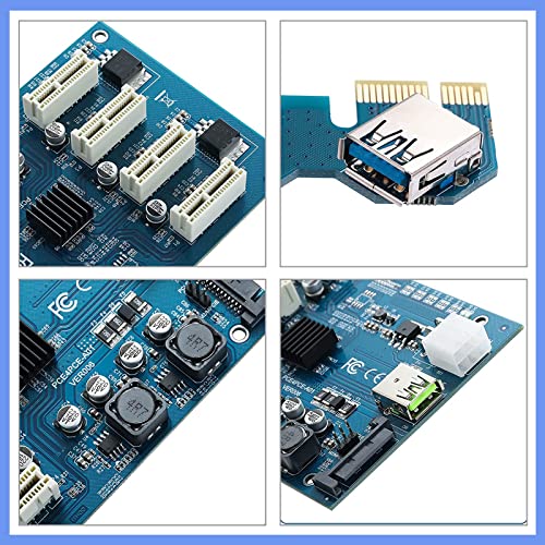 XTVTX PCI-E da 1X a 4 porte PCI Express 1X Slot Riser Card, USB3.0 Converter Extender Adapter Card, M2 Expansion Card Scheda PCIe Port Multiplier Compatibile con tutti i sistemi Windows, LINUX