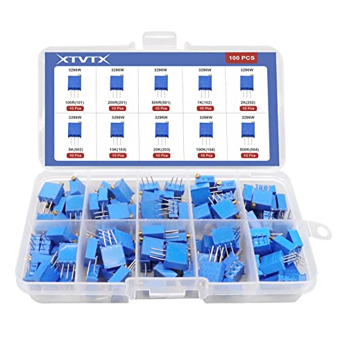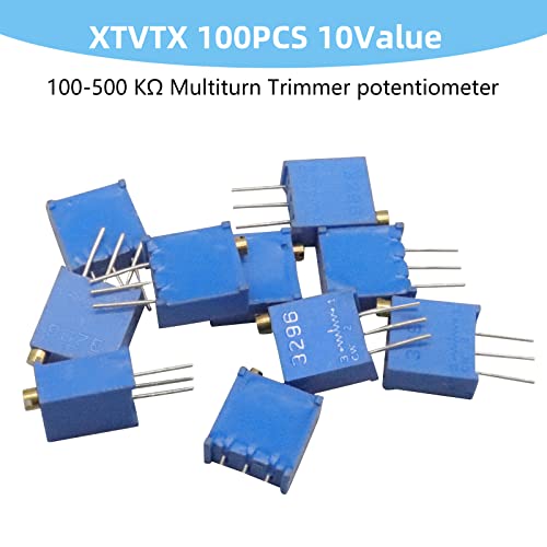 XTVTX 100 pezzi 10 Valore 100-500 KΩ Potenziometro Trimmer multigiro Kit resistenza 500 3296W Potenziometro Cermet Kit assortimento Alta Precisione (Blu)