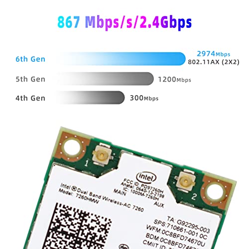 XTVTX Scheda Wireless Dual Band Universale Intel Dual Band Wirless 2.4G + 5G scheda wifi per Intel 7260AC 7260NGW 867 Mbps Scheda di Rete Wireless 4.0 Bluetooth supporto per 802.11 A/B/G/N/AC (1 pz)