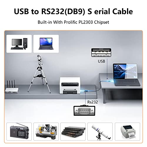 ►Ultimo chipset Prolific PL2303: il cavo adattatore USB DB9 utilizza il chipset PL2302 originale, che rende il trasferimento dei dati più stabile e affidabile. Supporta Windows 11/10/8.1/7/Vista/XP, Mac OS.Avviso: non supporta HP Pavilion g6 e l'altro PC (come il marchio Lenovo o HP) che è con una lista bianca