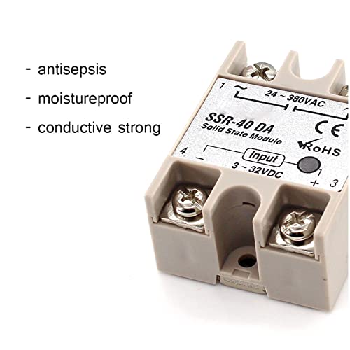 XTVTX Relè a stato solido SSR-40DA Relè a semiconduttore monofase Ingresso relè 3-32 V CC Uscita 24-380 V CA