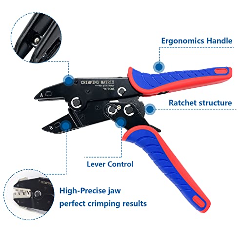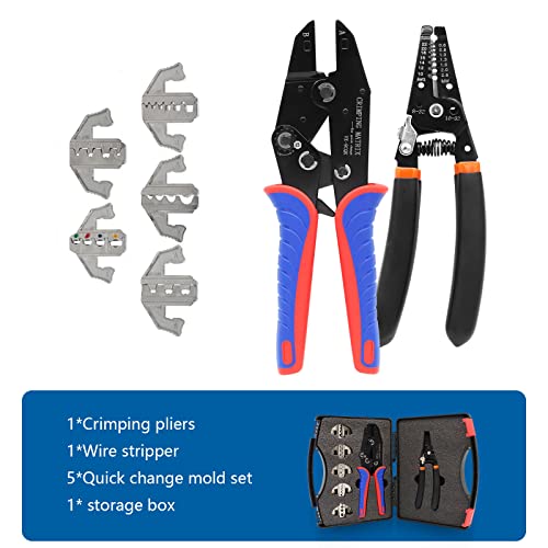 XTVTX Kit di strumenti Kit di crimpatura pinza crimpatrice a cricchetto con cacciavite 4 inserti intercambiabili,isolati e non isolati 10-22AWG