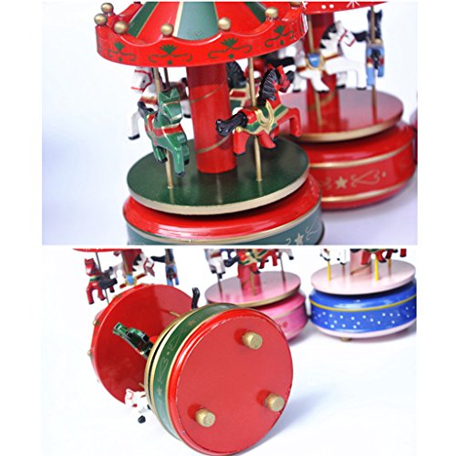 XuanMax Giostra 4-Cavallo Carillon Giostra Scatola Musicale in Legno Merry-Go-Round Giocattolo Carousel con Castello nel Cielo Melody per Natale Compleanno San Valentino - Verde