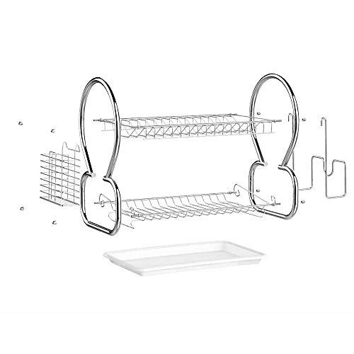 XUANYU Scolapiatti da Appoggio Portapiatti con supporto per tagliere Scolapiatti per tazze, piatti, Scolapiatti in Acciaio Inossidabile, 2 Livelli