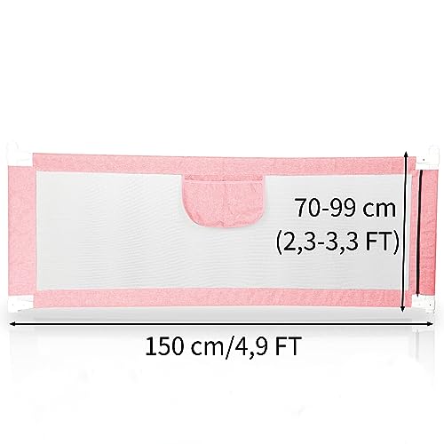 XUANYU Sponda da Letto 150/180/200 cm (4,9 FT/5,9 FT/6,6 FT), Sponda Letto per Bambini Barriera di Sicurezza Universale Anticaduta con 1 Tasca Barriera Letto da Viaggio (150 cm/4,9 FT, Rosa)