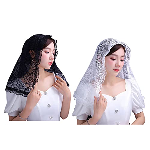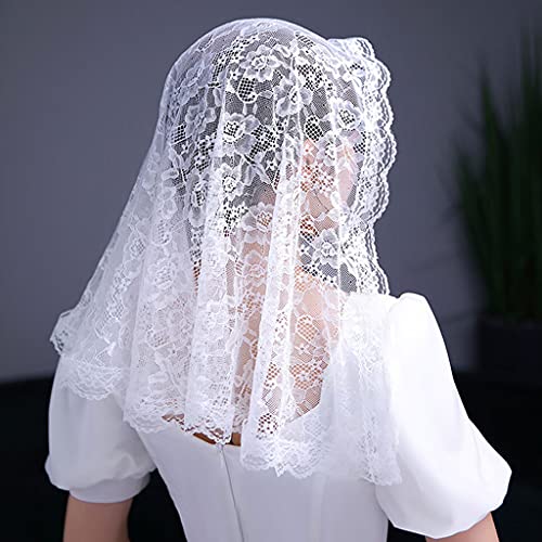 Xuebai Velo di mantiglia di Pizzo Morbido Confortevole Nero Bianco Stile Spagnolo Squisito Velo di Pizzo Rosa Che Copre la Testa per Le Donne Ragazze Velo da Chiesa Bianco