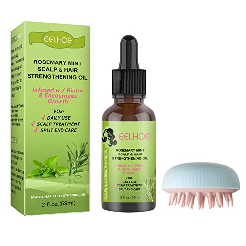 XUEBI Biotin Herbal Serum, Rosemary Mint Scalp & Hair Strengthening Oil, Scalp massage oil for hair growth and Hair Oil for Enhanced Shine (Essential Oil 1pcs + Shampoo Comb 1pcs)