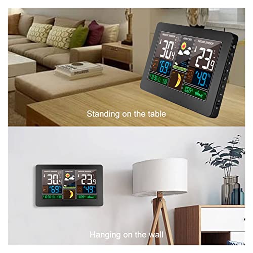 XUEBINGRU Orologio da Parete Stazione meteorologica Digitale 3 Sensore Wireless Interni termometro for Esterni igrometro Barometro previsioni Moderna Orologio -40 (Color: Black)