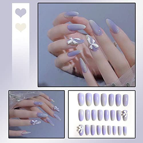 XUEJIAN 24 Pezzi Stampa su Copertura Completa Punte per Unghie finte Lunghe Toppe per Unghie bara Unghie finte Cuore Fiori Manicure Artificiale Strumenti per Nail Art per Ragazze Donne