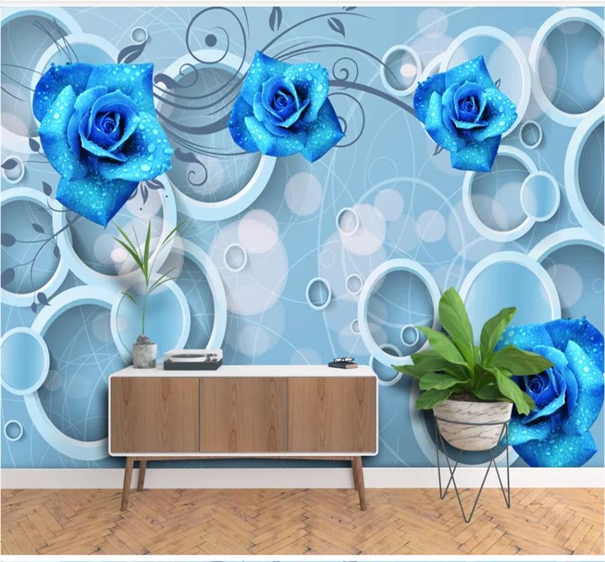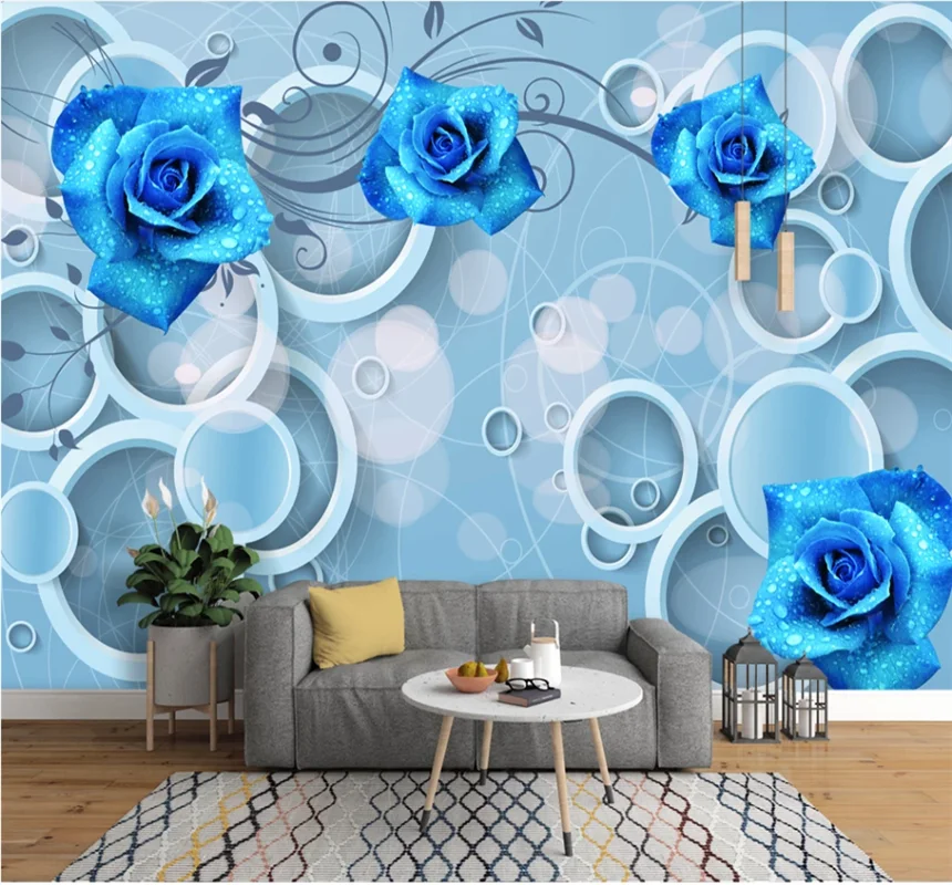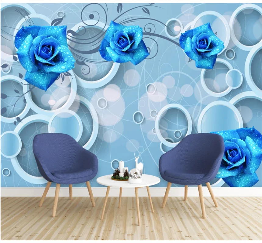 Xuesu 3D circle blue rose wallpaper mural TV background wall custom mural 8D waterproof wall cloth