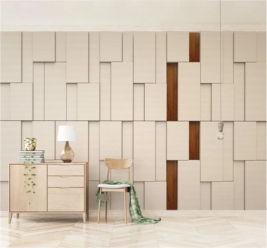 Xuesu Rice color cloth three-dimensional square wood Mosaic 3D TV background wall custom wallpaper 8D waterproof wall cloth