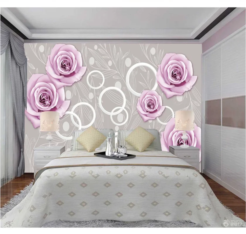 Xuesu Custom 8D waterproof wall cloth wallpaper mural three-dimensional ring rose decorative painting