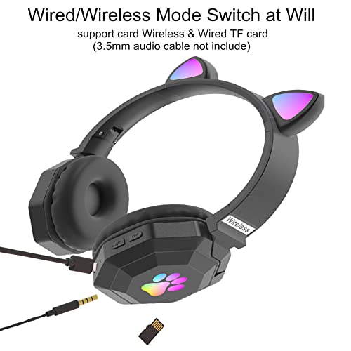 XUJAIOLQP Cuffie con Orecchie di Gatto, Cuffie da Gioco Wireless Cuffie con Orecchie di Gatto Carino con Luci a LED, Cuffie Bluetooth 5.0 da Gioco Pieghevoli per Bambini Adulti Laptop Portatile