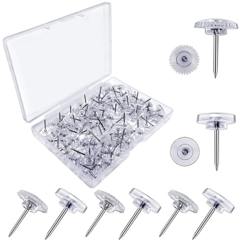 XUJLRL Confezione da 100 puntine Trasparenti per Ufficio con ingranaggio Rotondo - Puntine Trasparenti da 16 mm con Testa Piatta.