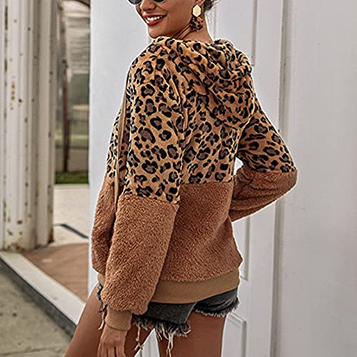 Xulahul Giacca Autunno Donna Manica Lunga Pullover con Cappuccio Camicetta Felpa Leopardata Giacca con Tasche Pullover con Cuciture T-Shirt Plus Size Zip Up con Cappuccio (Cachi, L)