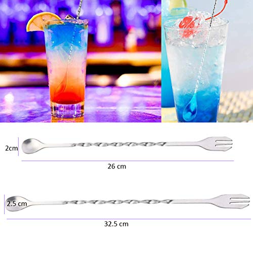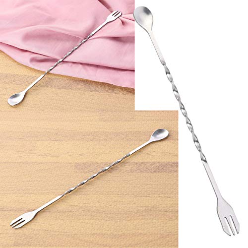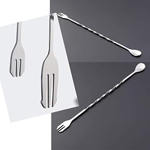 Xumier 10Pcs Cucchiaini da Miscelatore Cocktail Bastoncini per Piccolo Shaker Spoon Cucchiaini Lunghi Cucchiai Manico Lungoacciaio Mescolare caffè GelatoCucchiaio Forchetta in Uno