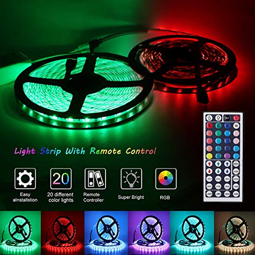 XUNATA Strisce LED RGB con Telecomando e Alimentatore, 12V 5050 Dimmerabile Sottopensile Nastri LED Retroilluminazione (Non impermeabile, 9m (5m+4m))