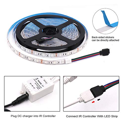 【Installazione facile e veloce】 Plug and Play senza cablaggio. Il forte nastro autoadesivo mantiene la luce della striscia in modo sicuro e senza danneggiare le cose quando si utilizzano viti