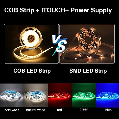 XUNATA 2m Striscia LED COB Bianco Naturale Dimmerabile (480LEDs/m) + Interruttore Dimmer ITOUCH + Alimentazione 12V