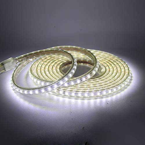 XUNATA Striscia LED 3014 con interruttore, cavo di alimentazione da 3 Metrietri 220 V, IP65 impermeabile, luce bianca fredda- 21 m