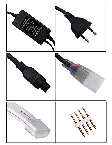 XUNATA RGB Luce al Neon Striscia LED con Telecomando e Alimentazione, 220 V SMD 5050 60 LED/m, Flessibile LED Strip per Scaletta Tetto Cavi da Cucina Decorazione - 9m