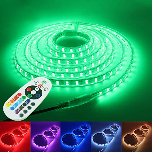 XUNATA 18m Striscia LED RGB 220V con Telecomando 24 tasti, Luce 5050 LED y Controller Ricevitore Segnale Impermeabile Kit Completo- 120 LEDs/m