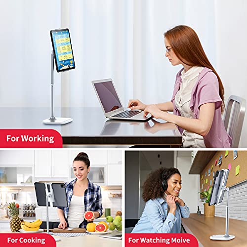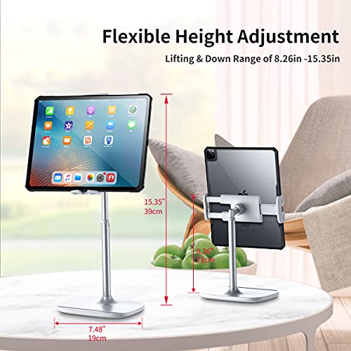 XUNDD, supporto per tablet e tablet regolabile, con base in lega di alluminio e morsetto girevole a 360°, compatibile con iPad 9.7/12.9, Air mini 2 3 4, iPhone, interruttore (4,7 ''-12,9'')-argento