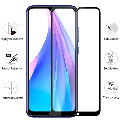 XunEda Pellicole Protettive per Xiaomi Redmi Note 8T 6.3", Full Coverage 9H Durezza HD Pellicola Vetro Temperato Screen Protector per Xiaomi Redmi Note 8T Smartphone(Nero-2 Pack)