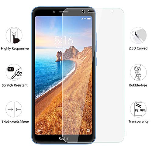 Realizzato in vetro temperato,superficiale 9H durezza,evita il prezioso danneggiamento dello schermo del Xiaomi Redmi 7A da oggetti taglienti,graffi,usura,esplosione.