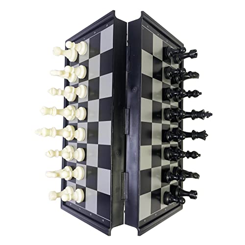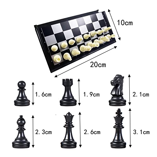 Xunfu Scacchiere e Scacchi per Bambini, Scacchiera Magnetica Portatile Giochi da Viaggio, Schacchi Scacchiera Pieghevole per Giochi da Tavolo Adulti, Nero Bianco 20x20cm