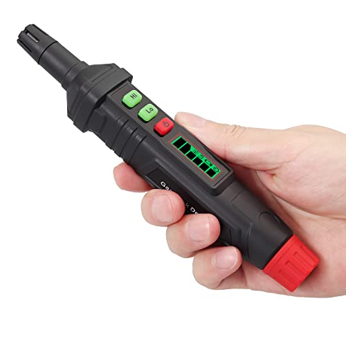 【COMPATTO E PORTATILE】 Ha un'Interfaccia di Facile Comprensione con il suo Pulsante di Accensione/Spegnimento e Sensibilità, i Clienti Possono Utilizzare il Dispositivo con una Mano. Ha la Gomma Intorno all'Esterno per Facilitarne la Presa. Design a Penna, Facile da Trasportare e da Usare. Cerca un Rilevatore in Grado di Rilevare anche le più Piccole Quantità di Gas, Altrimenti Potresti essere Inconsapevolmente Esposto a una Sostanza Tossica.