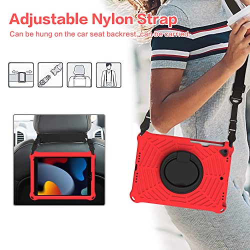 XunyLyee Custodia per bambini per iPad 10,2" (modello 2021/2020/2019) iPad 9a/8a/7a generazione Cover con supporto rotante a 360°/tracolla/portapenne - Rosso