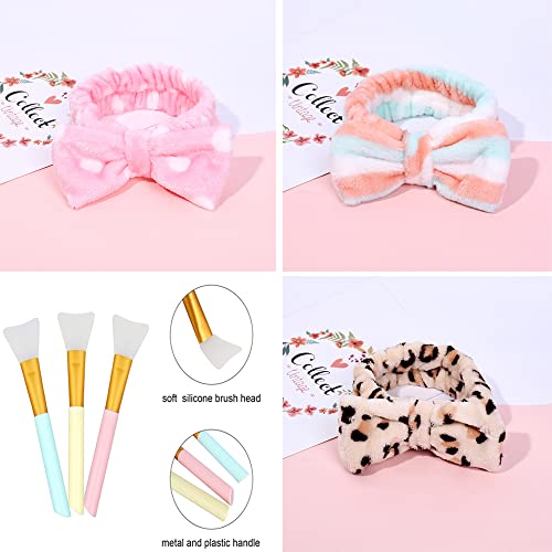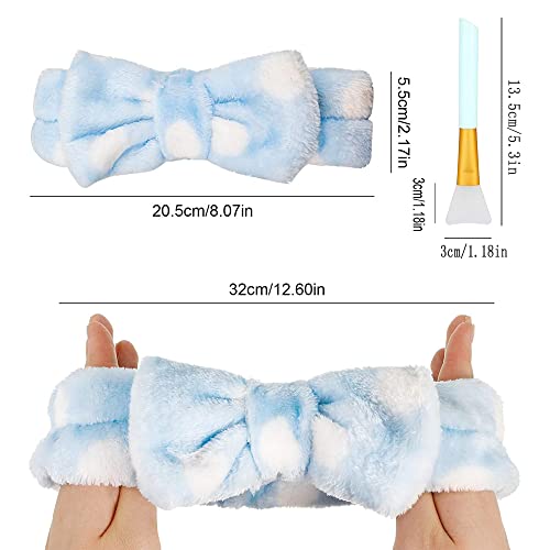 Xutong 6 fasce per capelli Bowknot con fiocco per capelli, fascia per il viso, morbida in pile rosso corallo, con 3 pennelli in silicone per la doccia e il viso