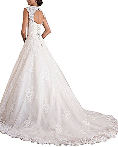 XUYUDITA Coprispalle in Pizzo con Scollo a V a Doppio Giro Appliques A Line Abiti da Sposa per la Sposa 2019 Bianco-46 Plus