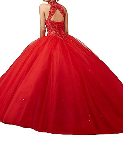 XUYUDITA Donne Aperto Indietro Ball Gown Pizzo Perline Prom Abiti da Sera Quinceanera Vestiti Rosa-38
