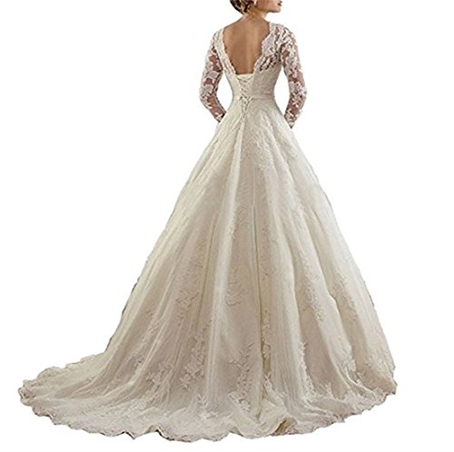 XUYUDITA Illusione Pizzo Applique Ball Gown Manica Lunga Cappella Treno Abito da Sposa Avorio-32