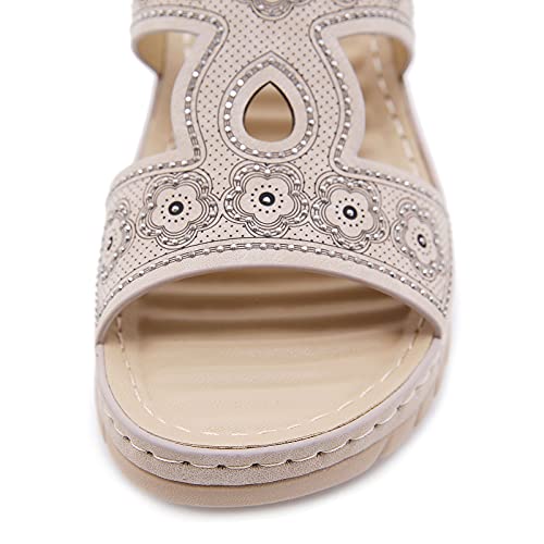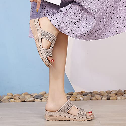 XX_OO ciabatte donna rosa sandali donna zeppa sandali comodi donna ciabatte rosa ciabatt donna estiv morbid pantofole donna estive spugna (E50-Beige,38)