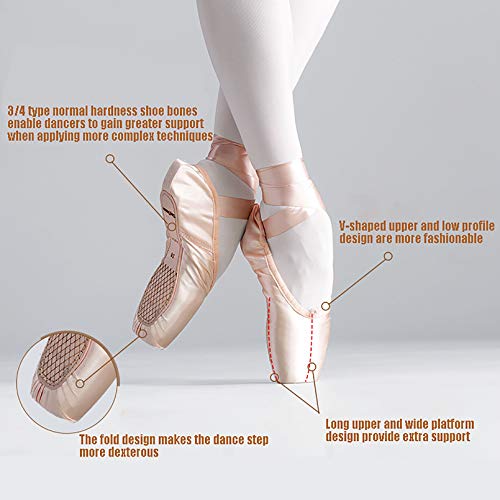 XXXZZL Scarpette da Danza Classica Punte Balletto Scarpe da Ballo Comprende Scarpette salvapunte e Nastri per Donna e Ragazza (Suggerisci Seleziona Una Taglia più Grande),Rosa,36