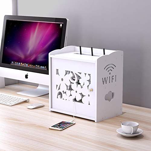 Xyanzi Mensola A Muro, Scatola di Immagazzinaggio per Cavo del Router Cavo di Alimentazione Finitura WiFi Set-Top Box Rack Bianco