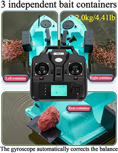 [Contenitori per esche di grande capacità]: la barca per esche ha 3 contenitori per esche indipendenti, che possono caricare 2 kg di esca e mettere facilmente l'esca in diversi punti di pesca, attirando un gran numero di pesci da raccogliere.Migliorare notevolmente il tasso di successo della pesca Inoltre, la barca esca può anche tirare una rete galleggiante, lunga 15 metri e larga 1 metro, che è molto adatta ai pescatori per andare a pescare.