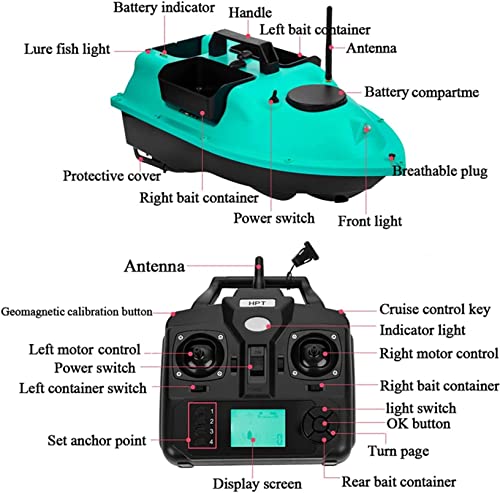 [Barca da esca RC intelligente]: Il nuovo tipo di barca da esca non solo cambia il suo colore in un blu più alla moda, ma passa anche dai soli 4 punti di ancoraggio originali a 16 punti di pesca in termini di posizionamento GPS. La barca esca può muoversi tra 16 punti di ancoraggio. In caso di perdita del segnale o batteria scarica, la barca tornerà automaticamente al punto di partenza e lo schermo LCD può visualizzare la carica della batteria, la bussola e il chilometraggio della barca!