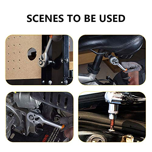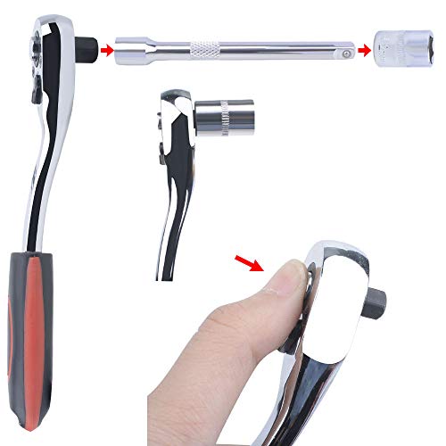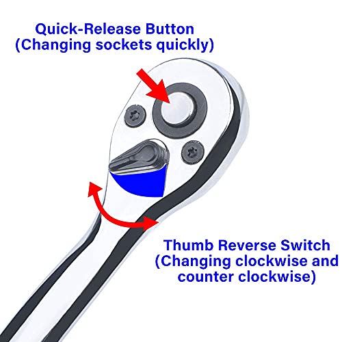 Cricchetto reversibile: la chiave a cricchetto è reversibile e ha un pulsante di sgancio rapido, così puoi lavorare in un piccolo spazio senza problemi. offre più efficienza e può farti risparmiare tempo ed energia. Lo sblocco a pulsante sul retro consente di cambiare il cricchetto reversibile in modo particolarmente rapido e semplice.
